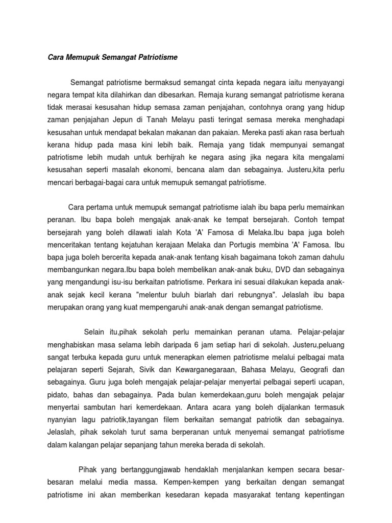 Langkah memupuk semangat patriotik contoh karangan spm cara memupuk semangat. Isu-isu yang berkaitan dengan semangat patriotisme kerap menjadi bahan. Ini jawapan saya yang telah diubah usai untuk dimuatkan dalam blog ini untuk Kertas 1 Bahasa.